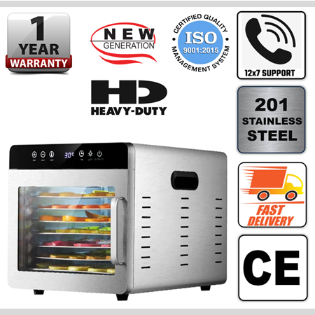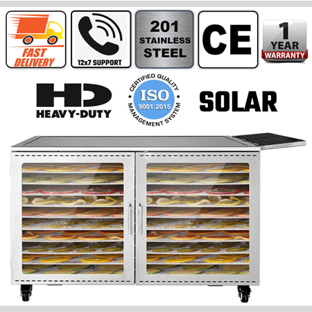 Its top business-class food dehydrator machine is now available in the Indian market. Super Stereoscopic surround air drying warm air fills the box to evenly heat to ingredients. Upgrade 12 major fans surrounding blowing balanced heat and uniform drying effect. Imported Intelligent touch control panel simple to use one-click start. Advanced microcontroller chips have perfect and constant temperature control no up and down during work reliable performance. 30~90 ° Wide area temperature control Multiple temperature ranges can be adjusted according to one's heart catering to a variety of food ingredients for temperature drying. Low power operation of just 5200 watts high energy saving high loading capacity of up to 100 kg per batch. It is an ideal food dehydrator machine for big-size food meat drying purposes it's a stronger weapon for the food industry in India. Drawer-style shelves Can freely extract shelves with a spacing of 5cm capable of accommodating different food ingredients. Upgraded thickened mesh disk with greater load-bearing capacity to prevent circular and other ingredients from rolling off. Enlarge and widen the visual window to monitor the drying process no need to open door. It is an ideal food dehydrator machine for big-size food, such as whole chicken, whole fish, big-size meat, anjeer, fig, long noodles, kurdai, big-size cooked food, shrimp, seafood, herbs, for industry use etc. for more about this product visit product catalogs button below or free to contact us.