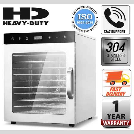 Model:- Yukti 501. Power:- 800W. Power Consumption:- 800W Per Hour. Quantity Of Trays:- 10. Rack Gap:- 30mm. Tray Size:- 30*28cm. Tray Type:- Mesh 5x5mm. Voltage:- 220V/50Hz. Temperature:- 30~90 C. Time Range:- 0-24 Hours. Noise Level:- 40-50 Decibels. Product Size:- 39.5*34.5*43cm. Control:- Digital Touch. Capacity:- 5~7kg (Depend On Material). Made From:- SUS201 Housing And SUS304 Trays. Weight:- 7kg. Warranty:- 1 Year. Shipping:- All India Free. Service:- Online. Usage / Application:- mushroom onion noodle garlic spice chilli ginger fish papad agarbatti fruit and vegetables drying.