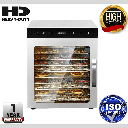 Model:- Yukti 338. Power:- 1000 W. Power Consumption:- 800 W Per Hour. Quantity Of Trays:- 10. Rack Gap:- 36 mm. Tray Size:- 38*28.5 cm. Tray Size:- Mesh. Voltage:- 220V/50Hz. Temperature:- 30~90 C. Time Range:- 0-24 Hours. Noise Level:- 45-50 decibels. Product Size:- 46.5*44.5*47.5 cm. Control:- Digital Touch. Capacity:- 5~10 kg (Depend On Material). Made From:- SUS 201 Housing And Galvanized Liner SUS 304 Trays. Weight:- 10.8 kg. Warranty:- 1 Year. Shipping:- All India Free. Service:- Online. Usage / Application:- meat fish onion food fruit and vegetable coconut chilli spices mushroom drying.